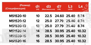 | Размер, спецификация | d1, мм | d3, мм | d7, мм | L3, мм | L4, мм |