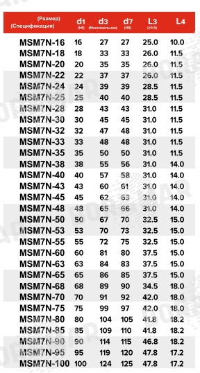 | Размер, спецификация | d1, мм | d3, мм | d7, мм | L3, мм | L4, мм |
